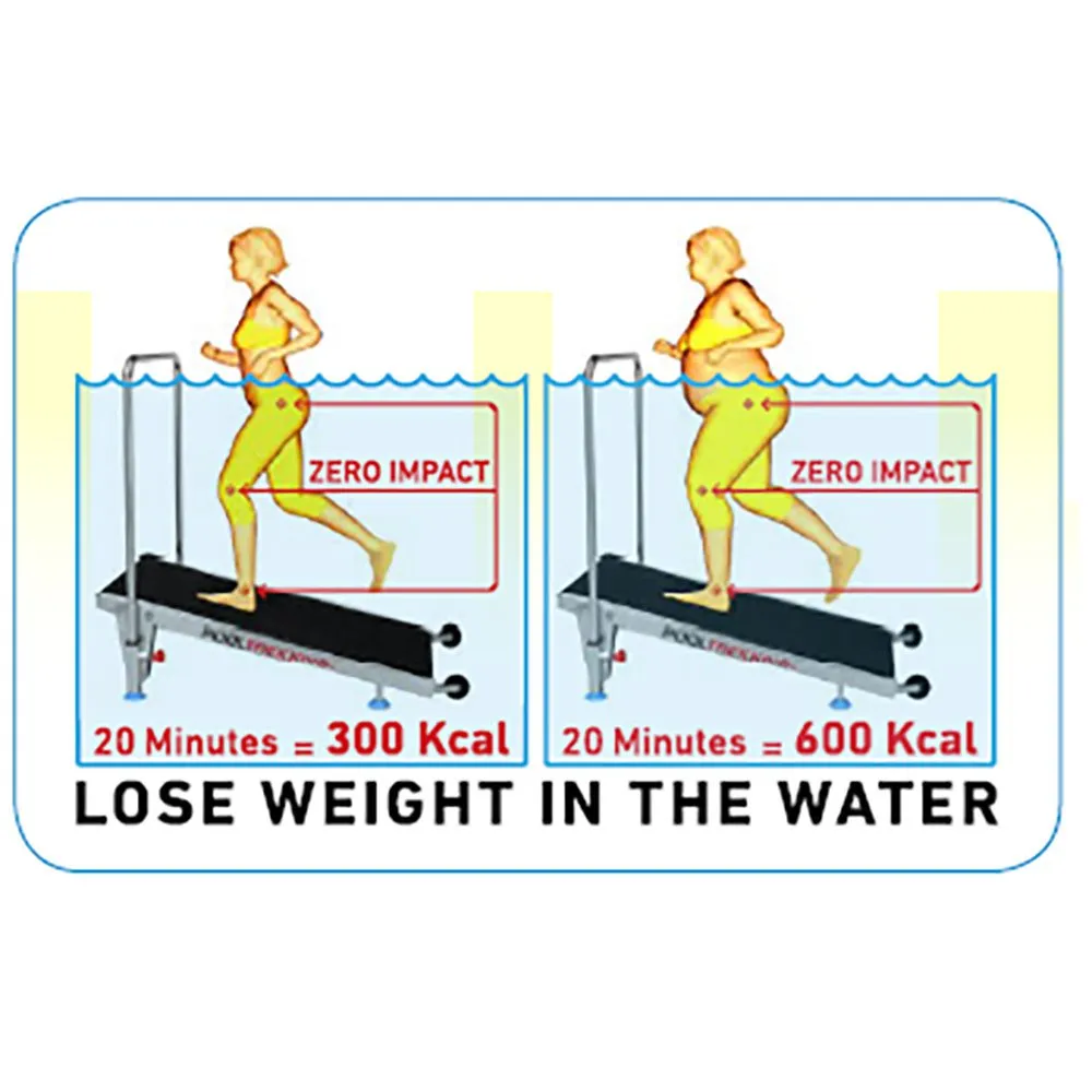 – The Pooltrekking acapulco is designed for intensive use in swimming pools for group sessions. It can be used for personal training, professional fitness in general and rehabilitation. The future of group activities in the pool is definitely turned towards the use of aquatic treadmills. The activity is called POOLTREKKING. The smooth movement of the running belt is propelled by the user himself. The treadmill is extremely stable. Robust, it requires very little maintenance. It can be folded for easy storage out of water. Put a treadmill in your pool!