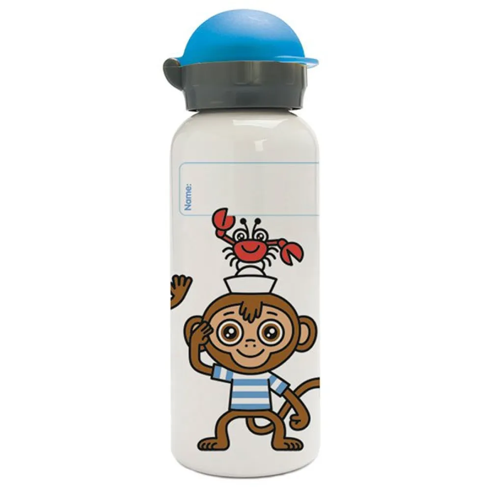 This reusable aluminum bottle, with a capacity of 450 ml, is light and resistant.