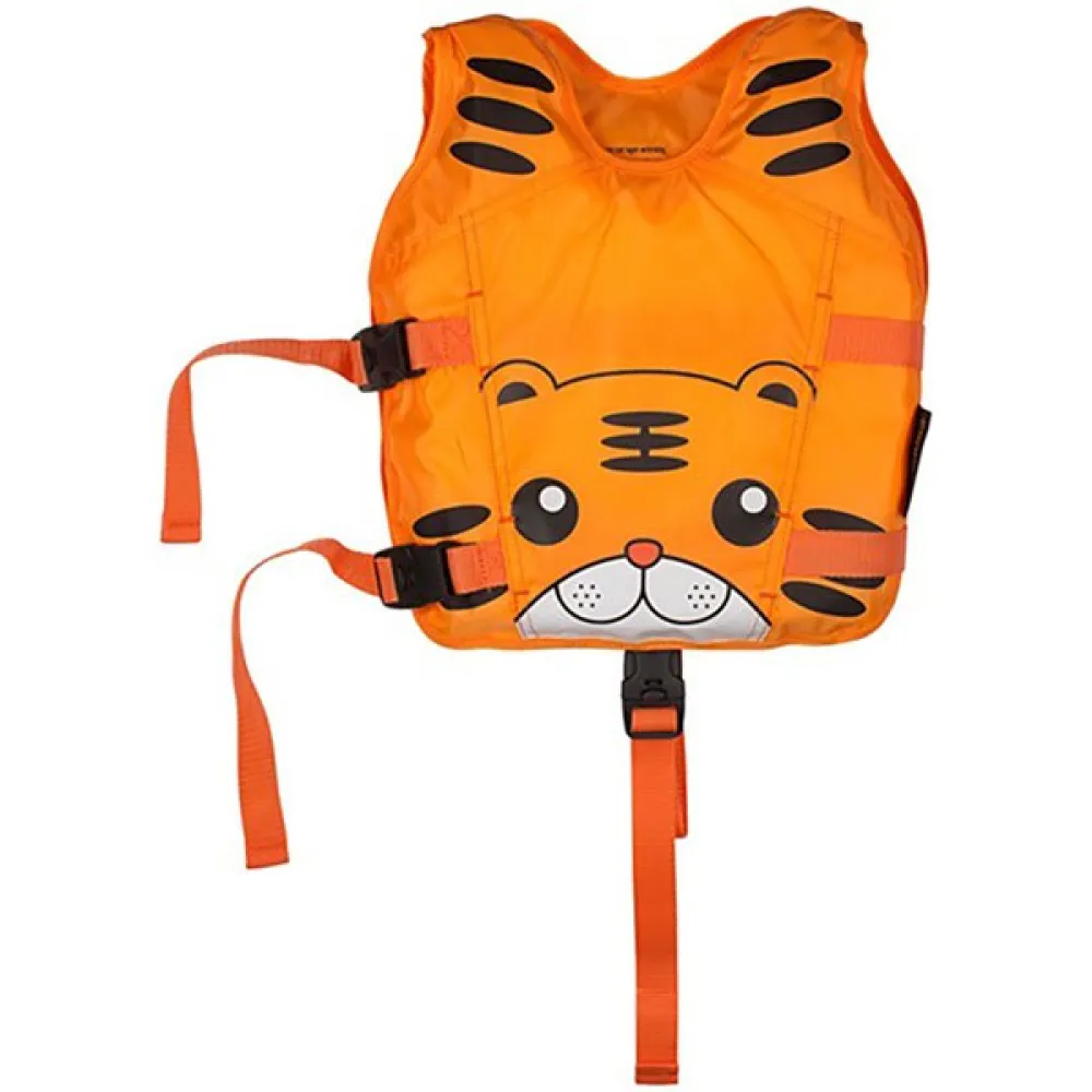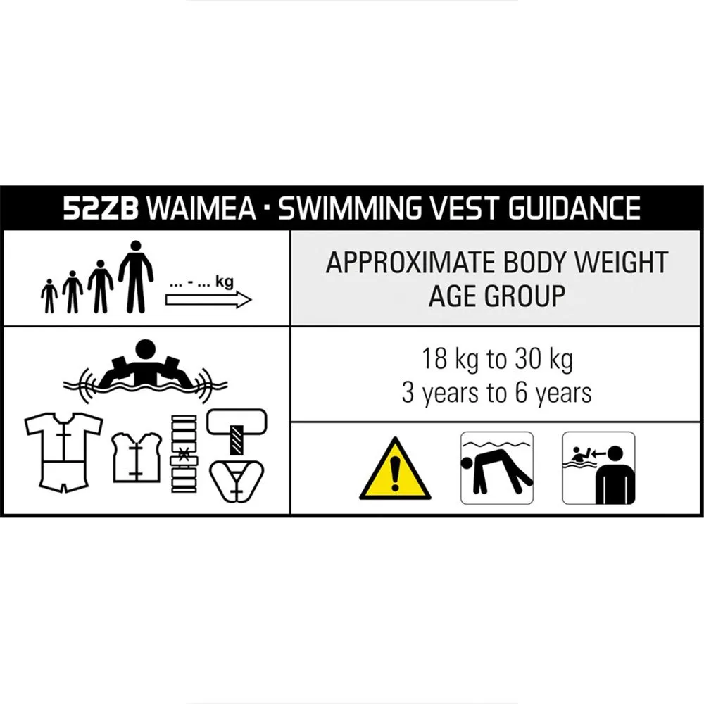 Super fun and handy Waimea life jacket for younger children (3 to 6 years) to support them in learning to swim and becoming acquainted with water. Safety becomes fun with this colourful floating aid made of EPE foam with a funny animal print. The straps with click buckles are located on the side (2) and between the legs so your life vest is super-easy to put on and take off.