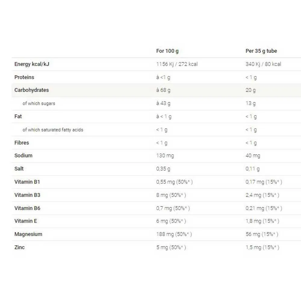 – This product – provided you are eating normally – is designed to meet the needs of immediate muscle activity during a competition or in particular environmental conditions. Cannot replace a varied and balanced diet and a healthy lifestyle. Our products are made with the utmost care. If, however, you notice the slightest anomaly, please return the product in its original packaging. Please do not throw away the empty packaging in the street. Keep away from heat and moisture.