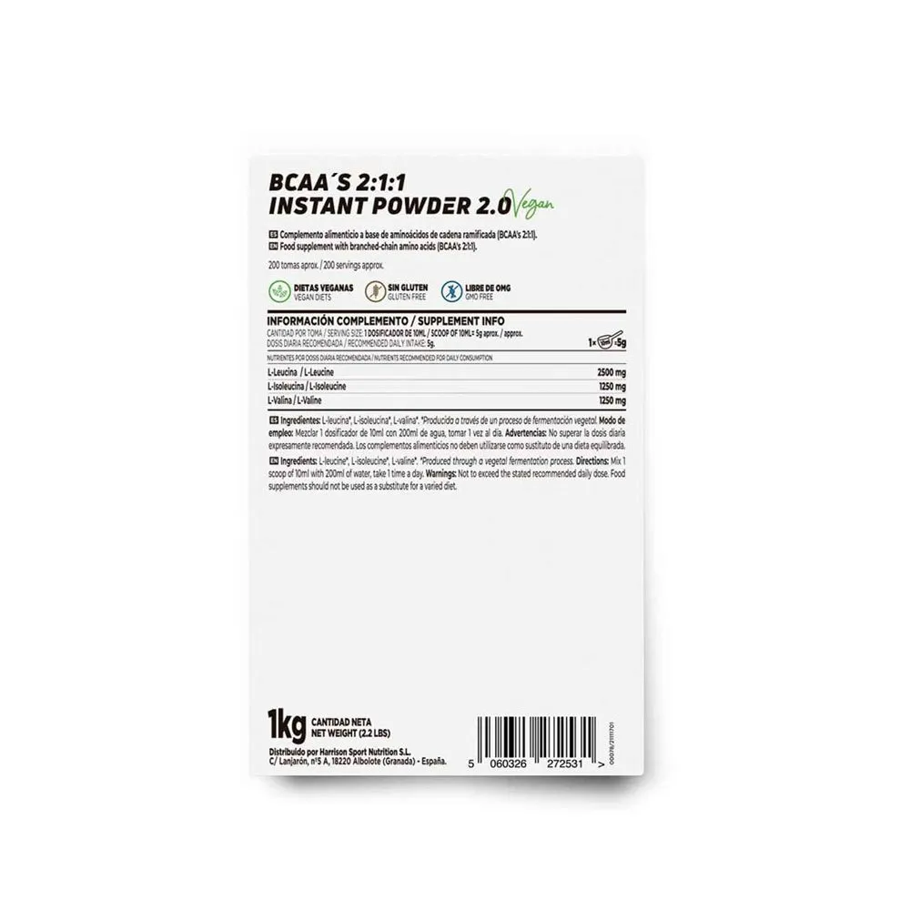 BCAA´s Instant 2:1:1 2.0 by RawSeries is a vegan powdered food supplement, based on branched amino acids (L-Leucine, L-Isoleucine, and L-valine), with a 2:1:1 ratio, from vegetable fermentation.