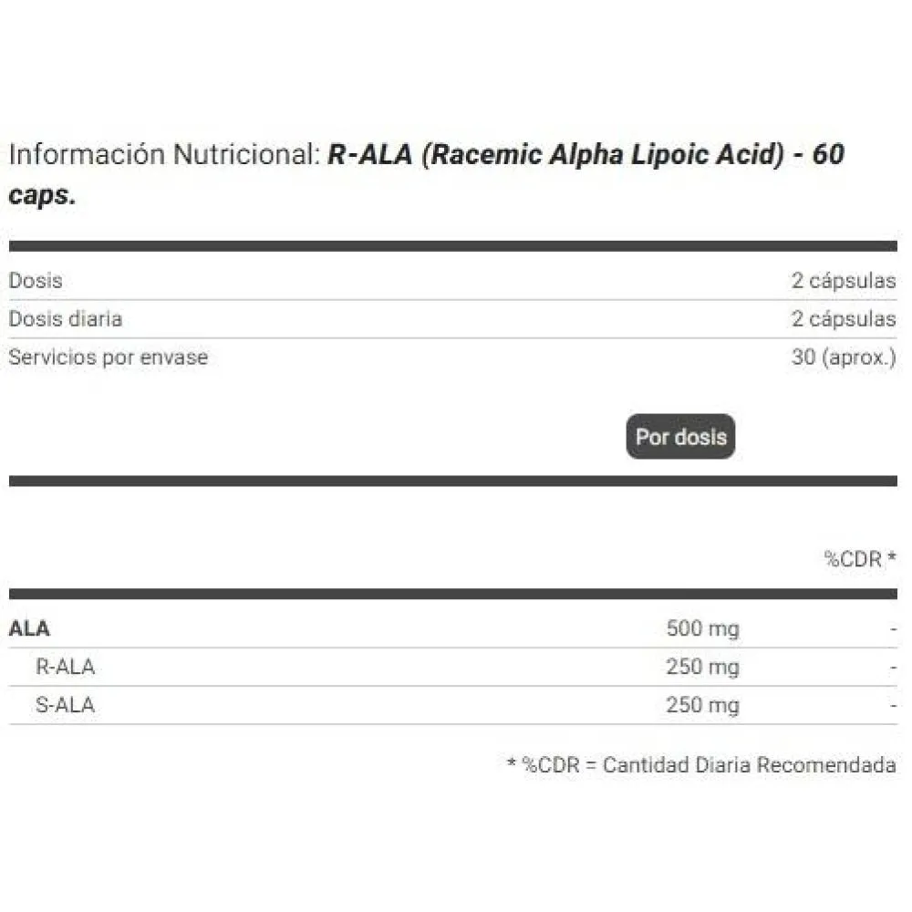 Big®´s pharma grade line, are nutritional supplements elaborated under the highest pharmaceutical standards. Which fulfills similar functions to those of vitamins within the body. Alfa-lipoic acid is a powerful antioxidant that offers protection against harmful free radicals, preventing these substances from producing any risk of deterioration, and accelerating cell aging, as a consequence derived from oxidation processes. It is soluble in both water and fat. Additional information allows you to act in places that most antioxidants are not able to arrive when you find water barriers or fat base on their way. It has the ability to act at the level of cell membrane lipids as in the aqueous environment of the cell cytoplasm. This increase contributes to a greater supply of nutrients in the muscles that are exercising, intensifies pumping, raises insulin sensitivity, increases decreatin concentration and reduces fat storage. In post-training shots, alpha-lipoic acid it is able to generate a peak of insulin similar to that of simple sugars, such as dextrose. Insulinaen pharma grade of big®, we have sought the excellence and quality of the product taking care of all the details for the best possible result. Therefore, the r-ala (racmic alpha lipoic acid) capsules of big®®, are 100% vegetable optimal conservation of the product. Enferencide indermical rachic enfo capsules per day presentation of 60 capsules.