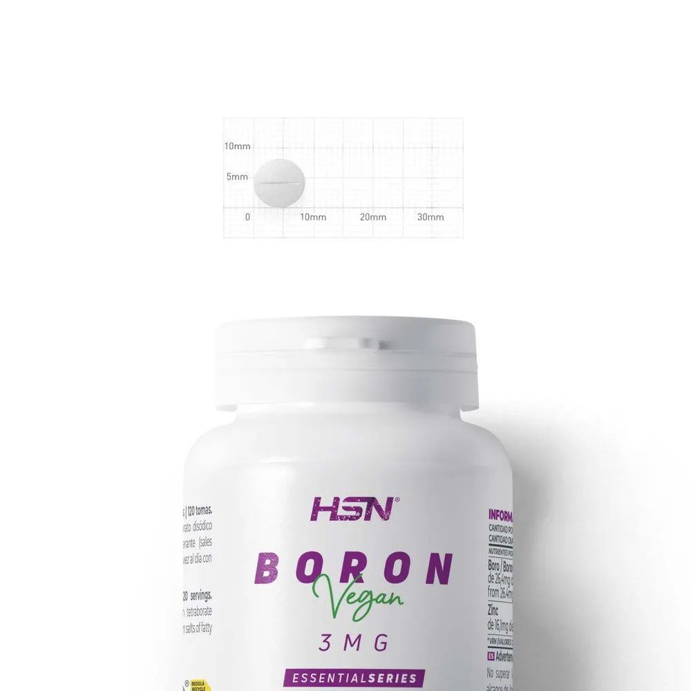 Trace element Boron. In the form of sodium borate (Borax). High elemental concentration. With Zinc. 3mg per tablet. Suitable for vegans.