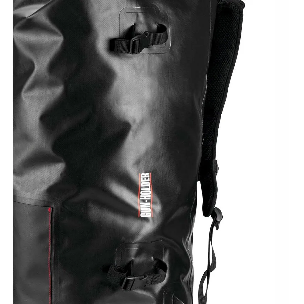 It has two straps to hold objects in each side that allow the transport of two spear guns.
