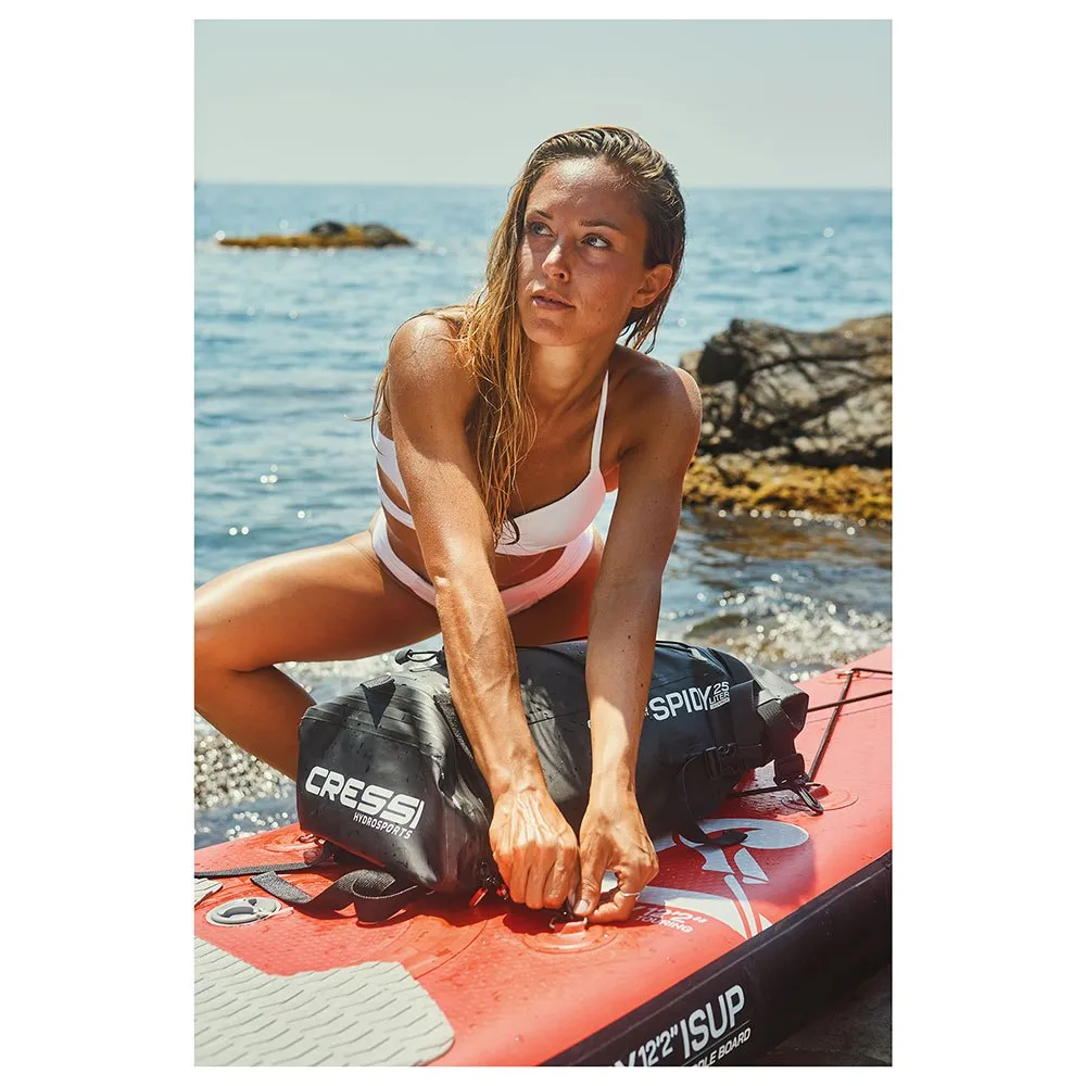 Spidy 25L Dry Deckpack came from the desire to create a waterproof backpack that can be comfortably carried on the board during sessions at sea. Spidy is a deckpack featuring adjustable straps with snap hooks, which can be hooked to the D-rings of each SUP in the collection.