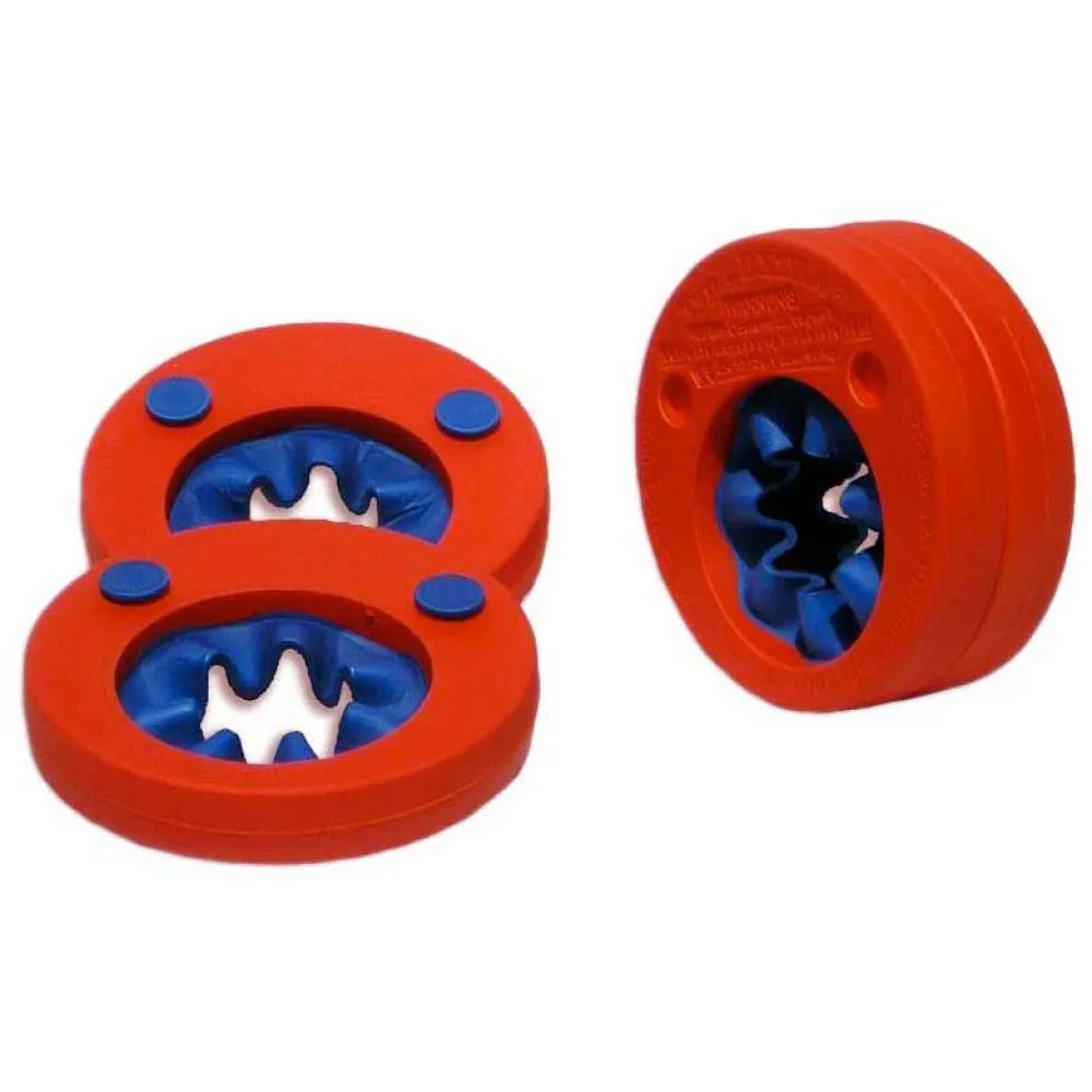 Delphin bracelet for adults with 4 adjustable discs. Made of polythene foam, it is safe and does not cause skin problems (phtalate-free). Resistant to heat, cold, rotting, chlorine and sea water. It does not compromise buoyancy in case of a puncture thanks to its 100% waterproof cellular foam structure. The discs are both light and soft, and they can be easily placed at the top part of the arm thanks to its flexible opening, which quite easily fits around everyone’s arms. The more number of discs, the more buoyancy we get. This way, the physical strength used during the work-out can be controlled. Floating item suitable for both initiation and learning as well as for therapeutic exercises.