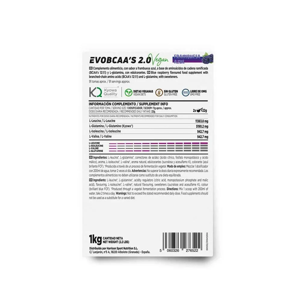BCAAs 12:1:1 with L-Glutamine Kyowa®. Branched amino acids from vegetal fermentation. Suitable for vegans. New flavours! Dairy Free,Gluten Free,Lactose Free,No Preservatives,Soy Free,Sugar Free,Suitable for Vegans,Suitable for Vegetarians,Without GMOs. Once opened, store in a cool (under 25ºC), dry and dark place. Nutritional supplements should not be used to replace a balanced diet. Keep out of reach of the smallest children. Do not exceed the stated recommended daily dose.