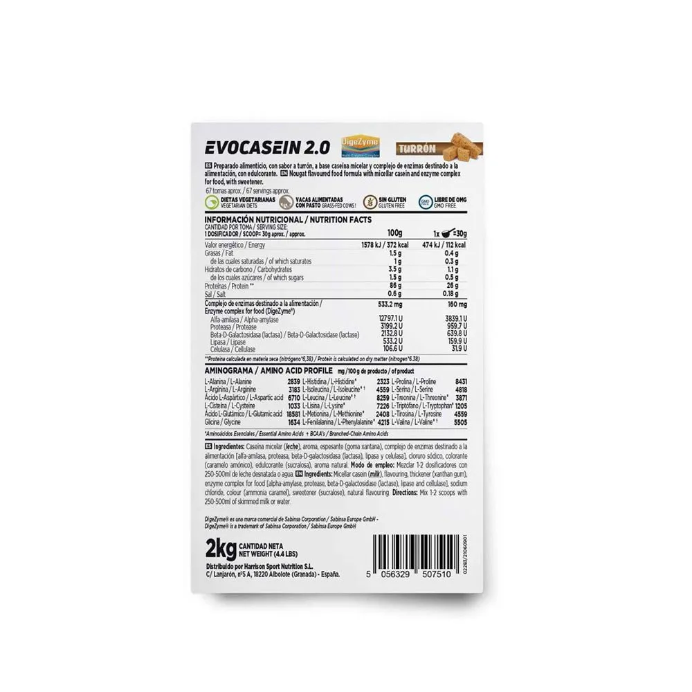 100% Micellar Casein. From grass-fed cows. Creamy texture. With Digezymeâ„¢. Suitable for vegetarians. Egg Free,Gluten Free,Grass Fed,No Preservatives,Nut Free,Soy Free,Sugar Free,Suitable for Vegetarians,Without GMOs. Keep in a cool and dry place.