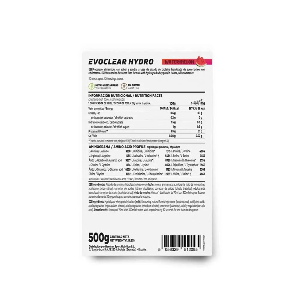 Clear Whey Protein. Whey isolate hydrolysate. High water content, no milk texture. Irresistible flavours. Low sugar content. +80% Protein. Suitable for vegetarian diets. Egg Free,Fish Free,Gluten Free,Lactose Free,Nut Free,Soy Free,Suitable for Vegetarians,Without GMOs. Store in a cool (below 25°C), dry and dark place.