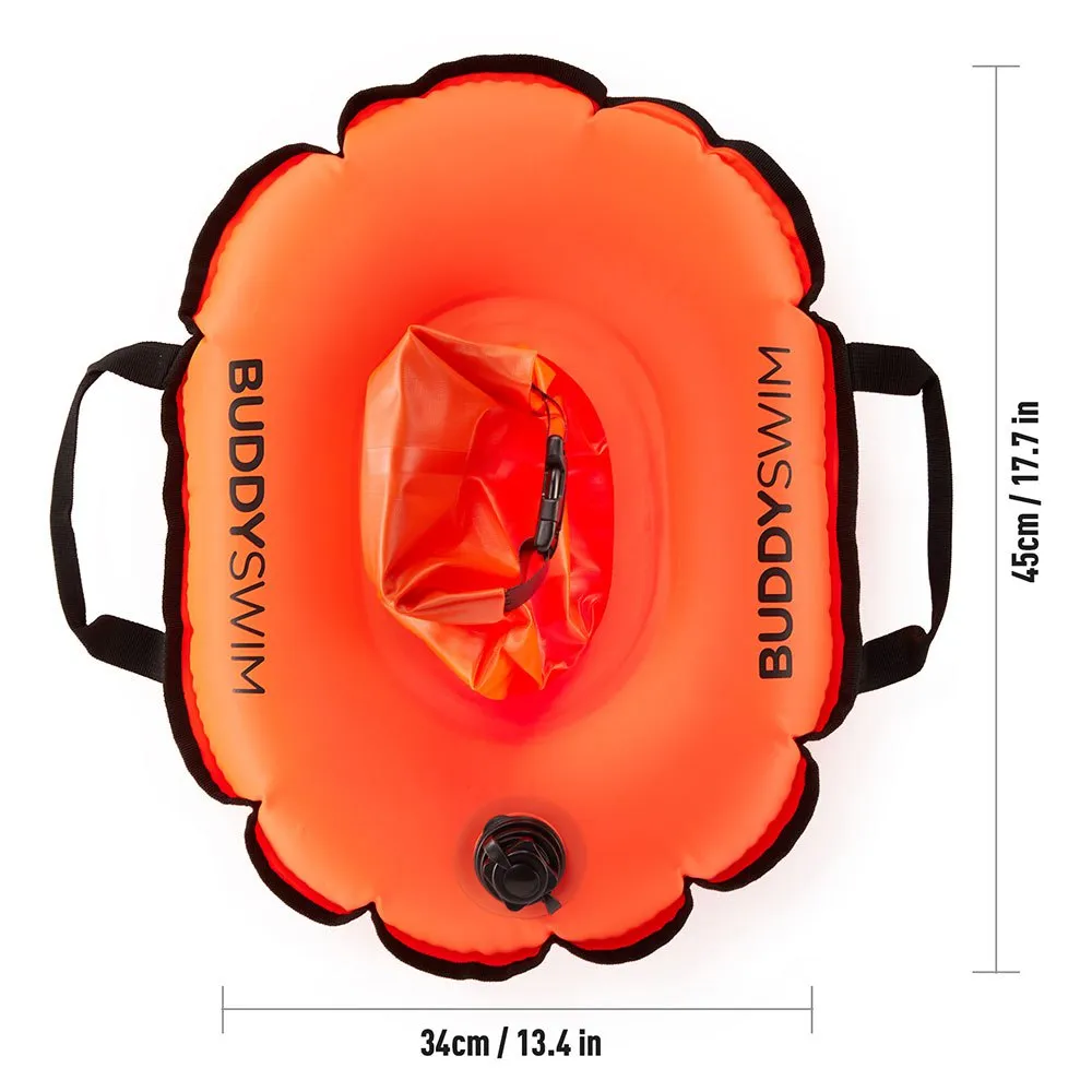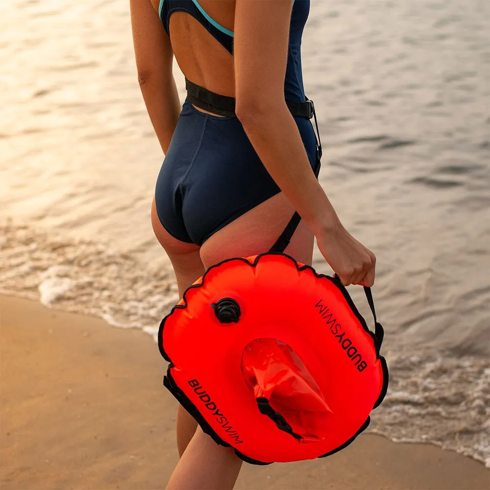 The Hydrastation buoy is designed for safety and storage for open water swimmers that wants to have an easy access to water bottle and bars or energy gels. The bright color keeps you visible to boats and the double airbag system allows it to beused as a safety device should you need to rest. It can also keep your valuables dry.