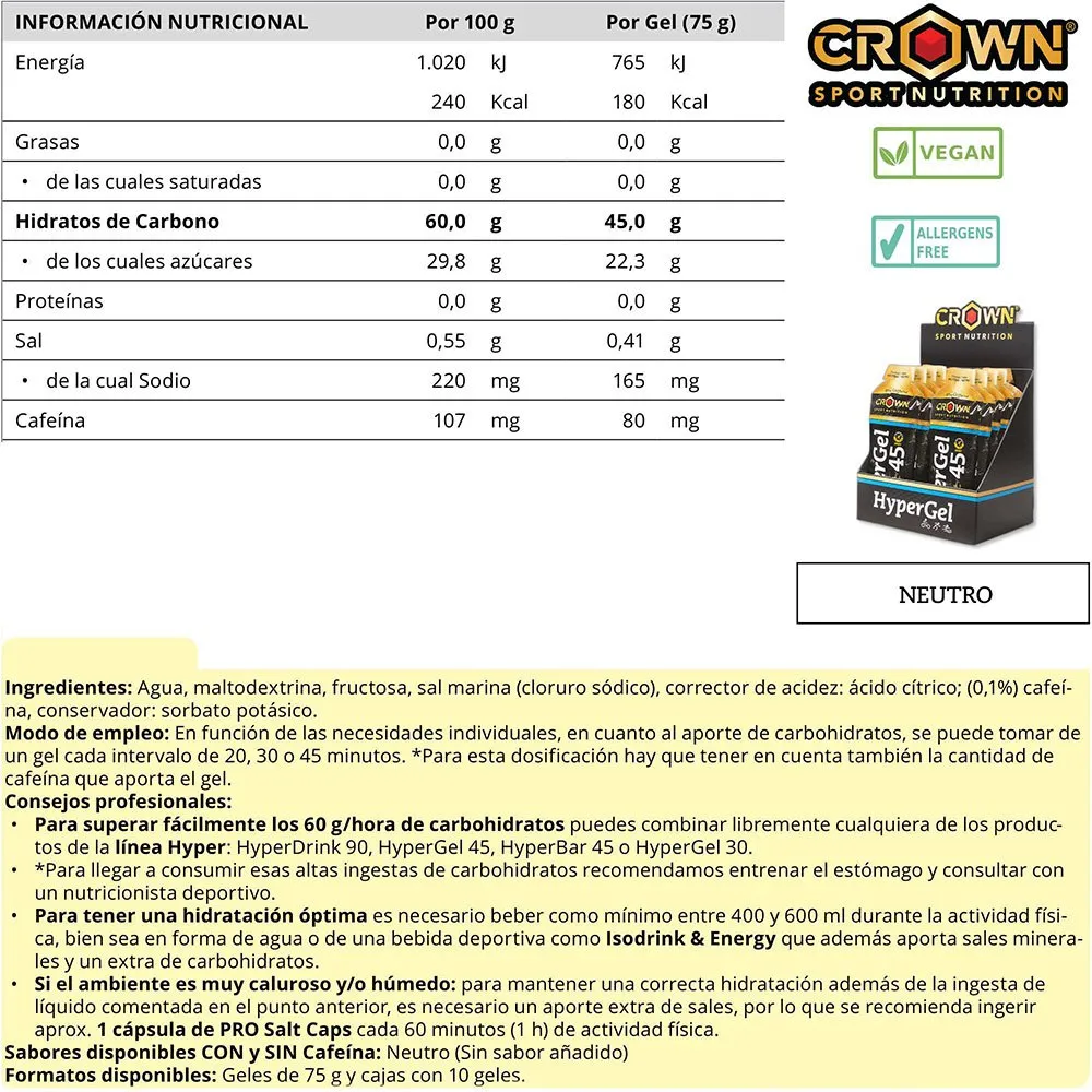 HyperGel 45., an energy gel of the highest quality and with an ideal composition of carbohydrates, caffeine and sodium, nutrients necessary to improve the performance of both training and competitions of long duration and / or high intensity.