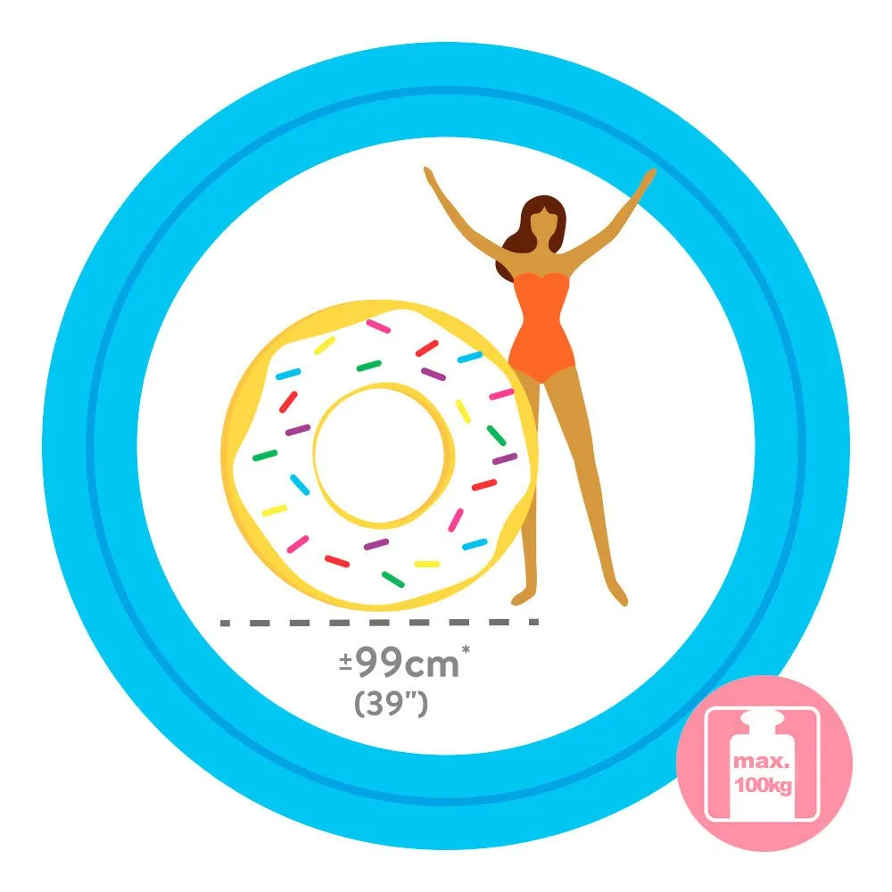 Intex inflatable coloured donut with photo-realistic design, measuring 114 cm diameter.
