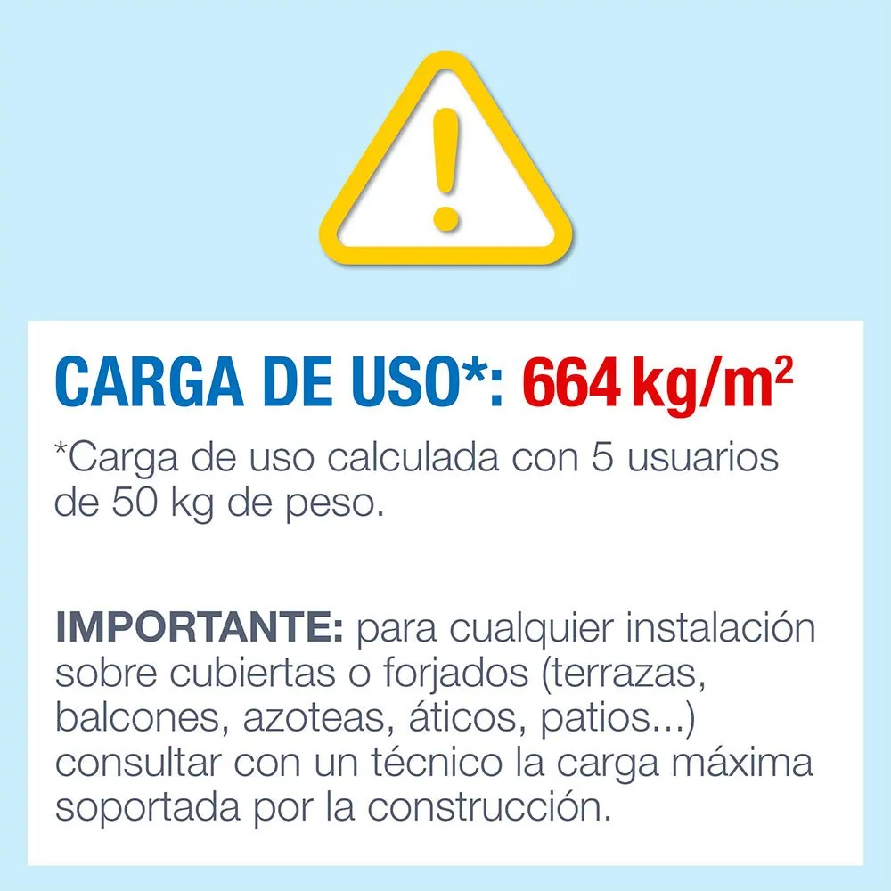 Use of the swimming pool is recommended from aged 6 years, with its measurements, it has capacity for 5 people.