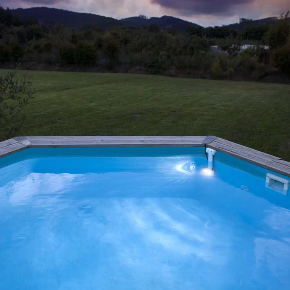 The range of spotlights and projectors are designed for any above-ground pools on the market and they incorporate innovative LED technology. Pool projectors are available in several formats: white or multicolored colors. Thanks to these lights a fun atmosphere will be created for your night baths and they will also illuminate your garden with different colors.