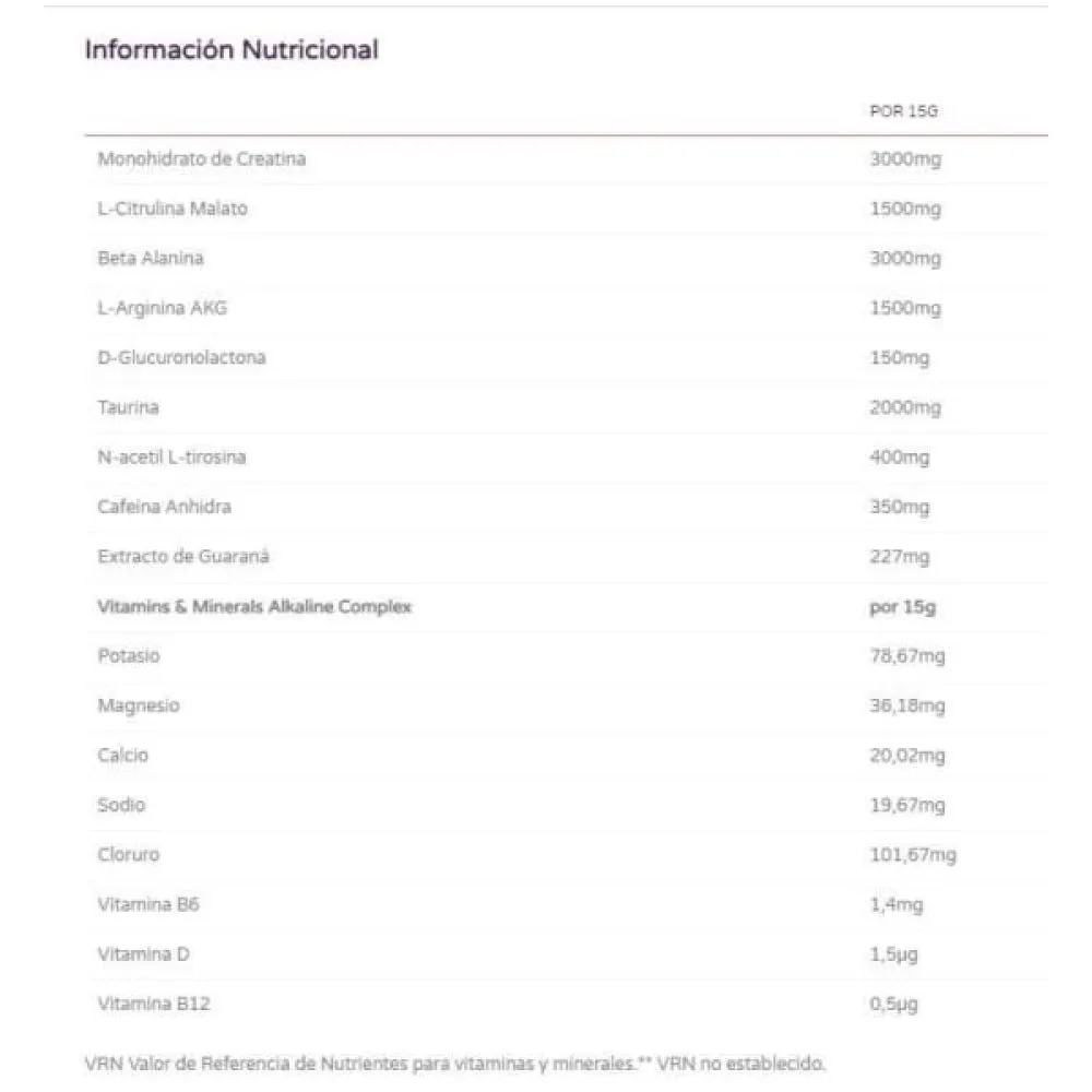 Tired of trying pre-training formulas that promise you great effects without getting almost anything? Do you usually start your training with a great energy that is declining as your pre-workout is running out? Forget all this and get ready for a true energy and stimulating explosion with the new mode on of wheyland. The pre-workout formula mode on it is specially designed to achieve the greatest performance, stimulation, resistance and explosiveness during the most intense training, getting none of your goals to resist. Additional information continues an ingredient matrix, such as monohydrate creatine and illo-kitter l-citrulin, oriented to increase in atp reserves and the volume of nitric oxide in the body, which means greater explosive energy and vasodilation. Thank you to its contribution of beta-alanine, arginine alpha keto-glutararate and glucoronolactone improves muscle resistance, thus delaying the appearance of fatigue.ingredients such as bullfighting or n-acetyl-l-pyrosine improve brain concentration, focusing training above all, and all this enhanced with, nothing more and nothing less, than 400mg of caffeine per dose, activating yourself in such a way that it will allow you that will keep your organism hydrated, thus avoiding cramps and muscle pulls, in addition to improving the absorption of nutrients. Ultra-incomed incredibly powerful concentrate. 400mg of caffeine for a highly stimulating effect by improving concentration. Nitric oxide formula for greater congestion and muscle vasodilation. Isotonic factor to avoid dehydration. -akg, aroma, dye (beet red e162), acidity corrector (citric acid), n-acetyl-l-lyrosine, anhydrity caffeine a, antiaglymerientes (silicon dioxide, calcium silicate), guaraná seed extract (paullinia cupana) 22% caffeine, sodium chloride, d-glucuronolactone, potassium chloride, acidity corrector (sodium citrate), edulcorants (sucralosa e955, acesulfamo-k e950), magnesium oxide, calcium carbonate, vitamins (pyridoxin hydrochloride (vit. B6), collective (vit. D), methylcobalamine (vit. B12)). Employment mode 1 saucepan 30 minutes before training mixed with 300ml of cold water. Read the full label before starting to use and follow the indications carefully. Presentation of 450 grams.