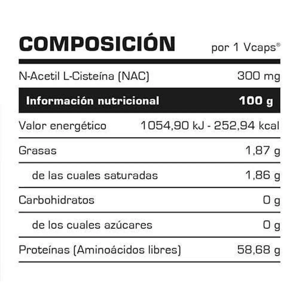 The n-acetyl-cysteine (nac) is a stable form of non-essential amino acid. The n-acetyl cysteine is the most used and the form of l-cysteine and is absorbed in the most effective way. It is a sulfur amino acid that acts as a stabilizer for the formation of protein structures, and is also a necessary component for glutation formation. As glutation component, it improves liver detoxification, so it is an important hepatic protector. It is a powerful antioxidant amino acid that helps us neutralize free radicals and toxic remains, it is also a cardiovascular protector, it helps to burn fat and improves joint problems. Employment mode 300 mg capsules.