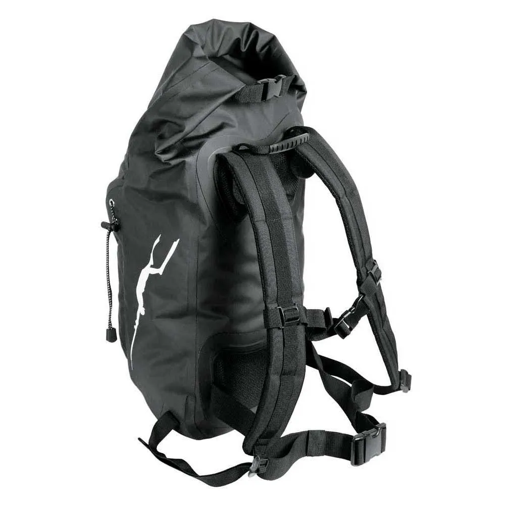 The shoulder straps and the back are padded for a more comfortable feel. This waterproof backpack for spearfishing has a maximum capacity of 23 liters.