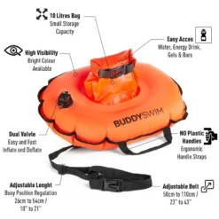The buoy has no negative impact on your swimming performance, even if it is dragged behind while swimming.It offers a waterproof pocket inside, suitable for Key and smaller items. The simple rotary valve makes it easy to inflate and deflate If necessary, the buoy can also be used as a buoyancy aid.