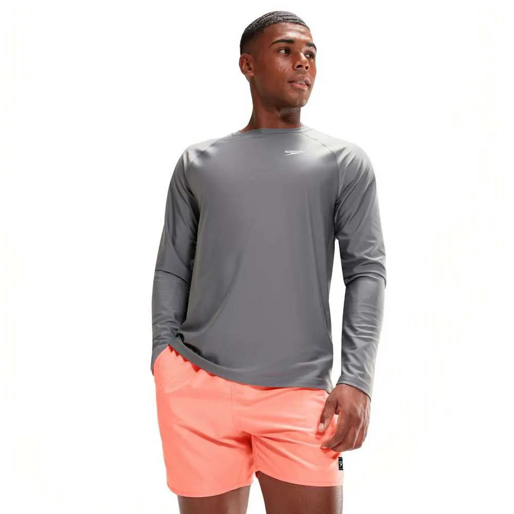 Trusted sun protection swimwear from our Essentials range. Come rain or shine, our grey Long Sleeve Swim Top will shield you from the elements and includes UPF 40 fabric sun protection to keep you protected in and out of the water. Its pull-on style and relaxed fit stay comfortable while you’re active, so you can enjoy your time outdoors, whatever the weather. Offering higher chlorine resistance than standard swimwear fabrics, it fits like new for longer with CREORA® HighClo™. Building on our eco commitment, the Swim Tee is made from 100% post-consumer waste, such as recycled plastic bottles.