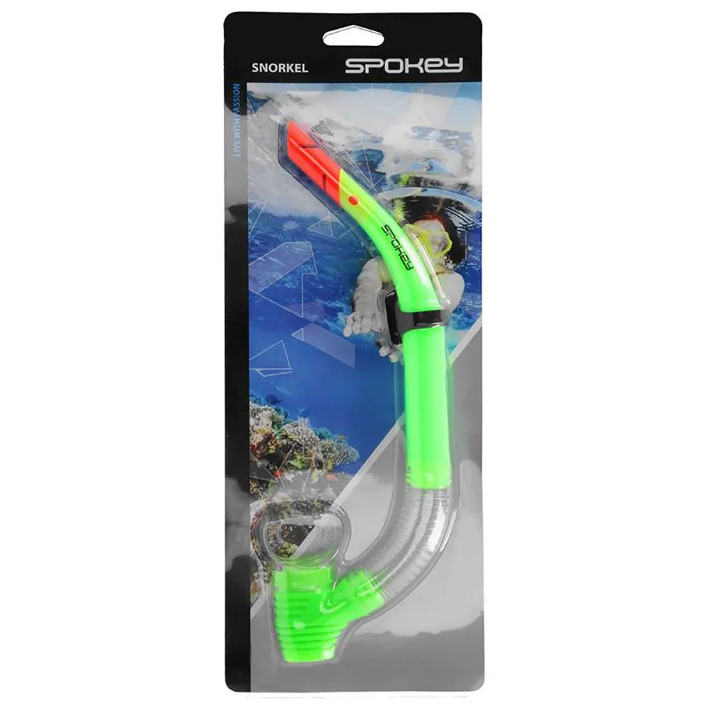 – The Spokey SNOPI snorkel can be used together with a swimming cap and goggles. It has a clip for the mask belt. It was created so that the water does not pour inside while swimming, thanks to which it provides maximum comfort and ease of breathing under water. It is made of the highest quality materials that ensure safety under water and long and satisfying use: PVC snorkel and mouthpiece, and the valve made of polycarbonate (PC). The bright colors of the snorkel tube make each user visible from a distance while swimming.
