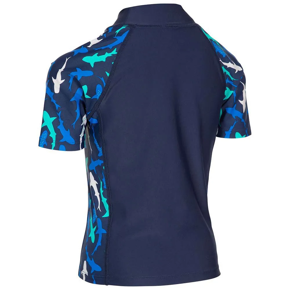 Keep them safe from the sun in the Jella rash guard. The printed wet t-shirt boasts UV protection so they can roam around without worry.
