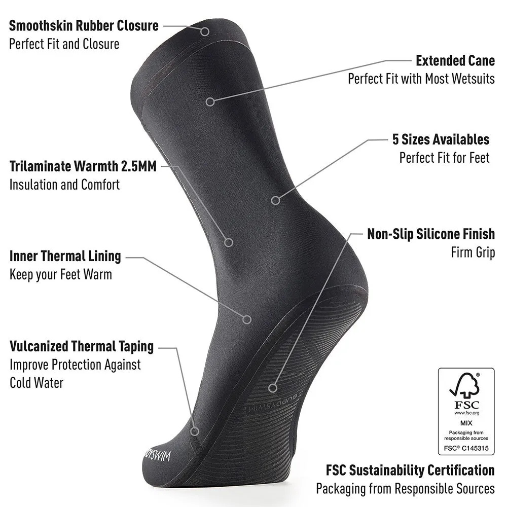 The ergonomic design and extra leg length give the socks an optimal fit, along with maximum waterproofing and comfort to keep feet warm while you swim.