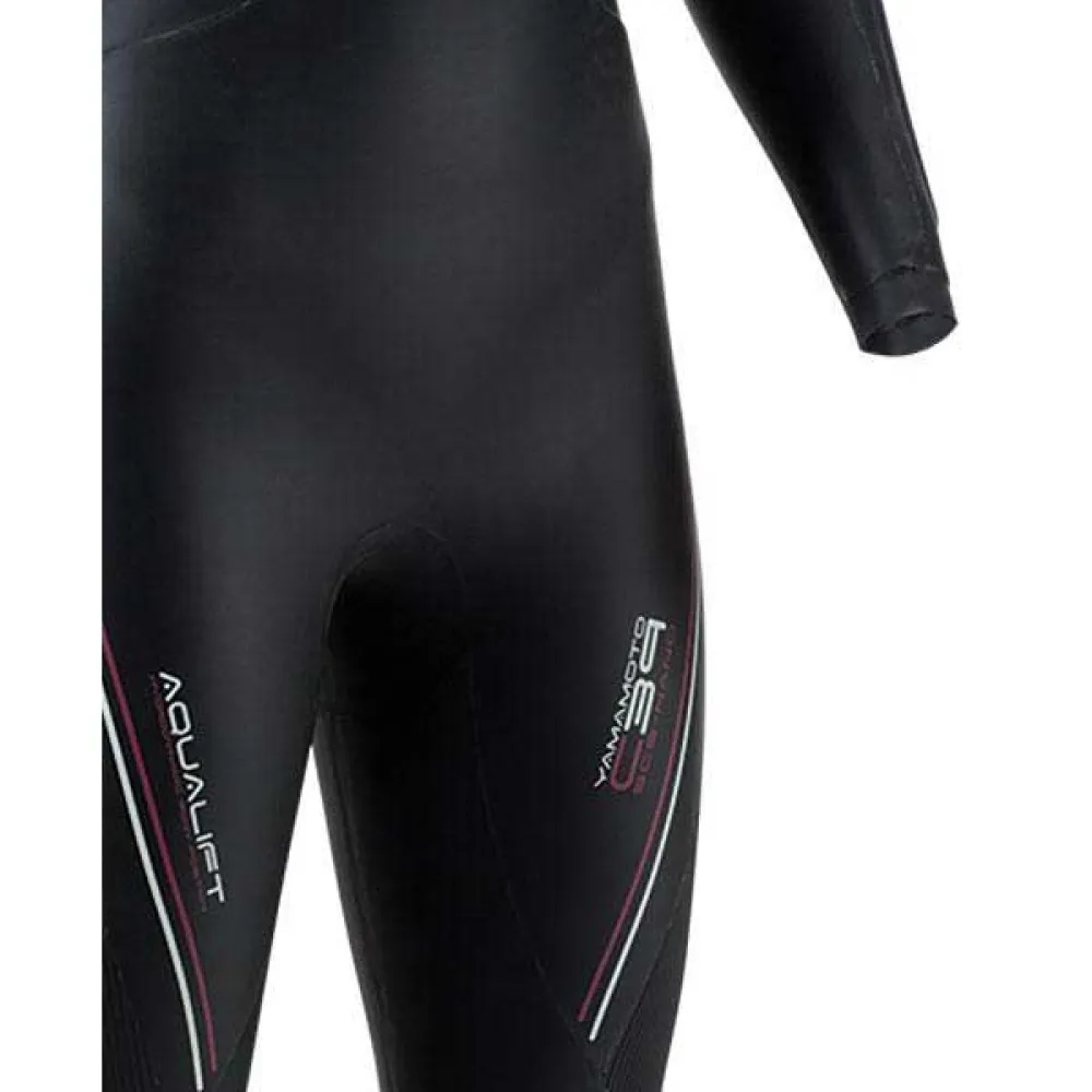 Aqualift in the rear of the suit, 5mm neoprene to make you buoyant and get you in the correct position